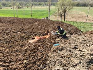 Edinilen bilgiye göre, Tuzla Mahallesi Kızıllar mevkiinde tarla kenarına boşaltılan hayvan gübresine batan At son anda kurtarıldı.