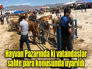 İl Emniyet Müdürlüğü Asayiş Dairesi Başkanlığı ekipleri, yaklaşan Kurban Bayramı öncesinde Erzurum Canlı Hayvan Pazarı'nda vatandaşları ve kurban satıcılarını sahte para, çek ve dolandırıcılık konusunda bilgilendirdi.