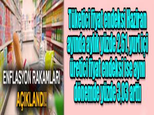 Türkiye İstatistik Kurumu (TÜİK), 2018 yılı Haziran ayı enflasyon verilerini açıkladı. Buna göre; Tüketici fiyat endeksi (TÜFE), (2003=100) 2018 yılı Haziran ayında bir önceki aya göre yüzde 2,61, bir önceki yılın Aralık ayına göre yüzde 9,17, bir önceki yılın aynı ayına göre yüzde 15,39 ve on iki aylık ortalamalara göre yüzde 11,49 artış gerçekleşti.