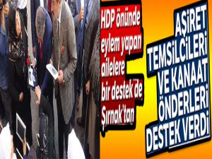 Diyarbakır'da çocuklarının terör örgütü PKK tarafından dağa kaçırıldığını iddia eden 43 ailenin, HDP il binası önündeki oturma eylemini 18'inci günde devam ederken, Şırnak'tan gelen Jırki ve Tatar aşireti temsilcileri aileleri ziyaret etti.
