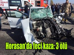 dinilen bilgiye göre, İstanbul'dan taziye için Ağrı'nın Tutak ilçesine giden Öner Cesim yönetimindeki 34 NF 4913 plakalı otomobil, Horasan ilçesine 20 kilometre kala Çakmak köyü yol ayrımında Hüsamettin Karakoç idaresindeki ters şeride giren tırla çarpıştı. Kazada hurda yığınına döndü araç içerisinde bulunan Söylemez Öner, Yazgül Öner ve otomobil sürücüsü Cesim Öner olay yerinde hayatını kaybetti. Kaza sonrası olay yerine çok sayıda ambulans, itfaiye ve emniyet ekipleri sevk edildi. Kazada yaşamını yitirenler Horasan ilçe itfaiye ekiplerinin uzun uğraşları sonucu sıkıştıkları yerden çıkartılarak olay yerindeki ambulanslar ile Horasan Devlet Hastanesi morguna kaldırıldı.Kazayla ilgili soruşturma başlatıldı.