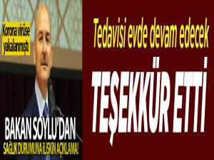 İçişleri Bakanı Soylu, sosyal paylaşım sitesi Twitter hesabından yaptığı paylaşımda, Bir süredir hastane ortamında süren tedavimiz, doktorlarımızın da uygun görmesi ile birkaç günlük dinlenme koşulu ile evde devam edecek. Eşim ve kızım ise negatife döndü.