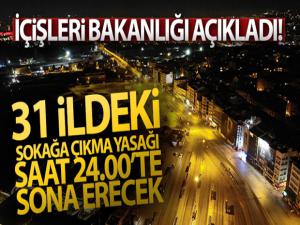 İçişleri Bakanlığından yapılan yazılı açıklamada, Korona virüs tedbirleri kapsamında 31 ilimizde uygulanması kararlaştırılan 2 günlük sokağa çıkma yasağı daha önce açıklandığı üzere bu gece saat 24.00 itibarıyla sona erecektir. Sokağa çıkma yasağı uygulanan illerimizde bulunan 63 milyon 640 bin vatandaşımızın neredeyse tamamına yakını alınan karara evlerinde kalarak yüksek bir oranda uyum göstermişlerdir. Vatandaşlarımıza göstermiş olduğu bu duyarlı davranıştan dolayı bir kez daha teşekkür ediyoruz.