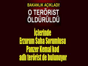 Bakanlık, etkisiz hale getirilen teröristlerden birinin kırmızı listede aranan sözde Erzurum saha sorumlusu Panzer Kemal kod adlı Medeni Sayılgan olduğunun tespit edildiğini bildirdi.(iha)
