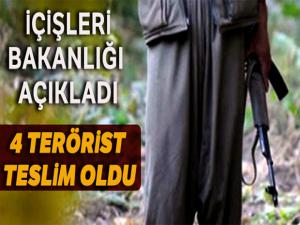 İçişleri Bakanlığı, 3'ü erkek, 1'i kadın olmak üzere toplam 4 terörist Habur Sınır Kapısı'nda güvenlik güçlerine teslim olduğunu açıkladı