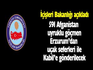İçişleri Bakanlığı, Aşkale Geri Gönderme Merkezi'nde sınır dışı işlemleri tamamlanan 591 Afganistan uyruklu göçmenin 07-08 Nisan tarihleri arasında Erzurum'dan Kabil'e düzenlenecek olan charter seferleri ile sınır dışı edileceğini bildirdi.