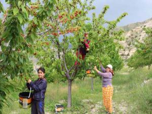 Kiraz bahçesi sahibi Mustafa Güngör, 4 kişinin eliyle sürekli kiraz topladığını, günlük 200 kilo civarında kiraz toplayabildiklerini dile getirdiler.