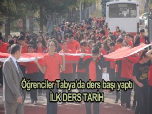 Öğrenciler ilk dersi Tabyalar da görmenin kendileri için daha iyi olduğunu ifade ederek, "Bugün şehitlerimizi yad ediyoruz." dediler.
