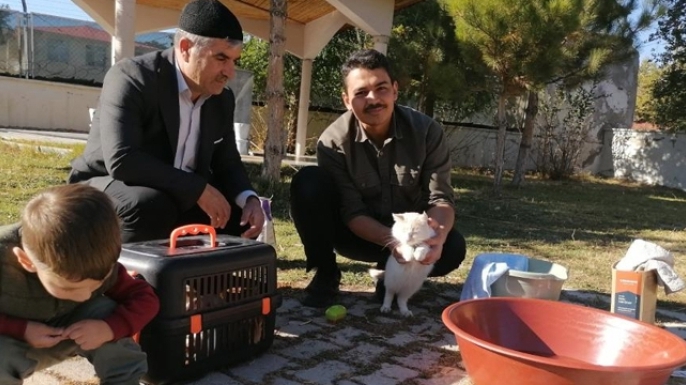 Yunus Çaykara, "Tabii bizler camilerimizde, vaazlarımızda merhametten, sevgiden, hoşgörüden bahsediyoruz. Bunları tabii cemaatimiz insanlar üzerine anlıyorlar. Ama bizler diyoruz ki sadece insanların üzerine merhamet olmaz. Hayvanlara da merhamet, şefkat, sevgi lazım. Biz bunun farkındalığını oluşturmak adına camimizde yaklaşık 10 civarı kedinin bakımını üstleniyoruz. Onlara her vakit geldiğimiz zaman mama ve sularını temin ediyoruz. Tabii coğrafyamız biraz soğuk bir coğrafya, 30'ları dahi görebiliyor. Hayvanların o soğukta sıkıntı yaşamaması için bizler camilerimizin altında sığınak tarzı bir yer, sıcak bir bölge ayarladık. Kışın yemek bulmak da tabii zor oluyor hayvanlar için. Biz yine aynı şekilde her gün hayvanların yemlerini, mamalarını ve sularını temin ediyoruz. Bunun dışında hayvanlarda herhangi bir hastalık olduğu zaman en yakın veterinere gidip, orada onların mesul tedavisi varsa tedavilerini üstleniyoruz. Ve yine bakımlarını yapmaya devam ediyoruz" dedi.