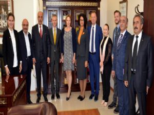 Toplantı için Erzurum'a gelen, AB Schengen Grubu Başkanı ve Letonya'nın Ankara Büyükelçiliği İkinci Katibi Samija Serifa, Almanya'nın Ankara Büyükelçiliği'nden Konsolos Stefan Delfs, Hollanda'nın Ankara Büyükelçiliği Konsolosluk Dairesi Başkanı Diane Argente - de Joode, AB Schengen Grubu ve Sınır Yönetimi Sorumlusu -AB Delegasyonu Temsilcisi Jörg Dieter Köstinger, Çek Cumhuriyeti İstanbul Başkonsolosluğu Vize Bölümü Başkanı Nora Jurkovicova ile İktisadi Kalkınma Vakfı (İKV) Genel Sekreter Yardımcısı Melih Özsöz ilk olarak ETSO Yönetim Kurulu Başkanı Lütfü Yücelik'i ziyaret ederek bir süre görüştü. Başkan Yücelik'le tanışan konsolos ve büyükelçilik yetkilileri görüşmede, 'AB-Türkiye Vize Serbestisi Diyaloğu' kapsamında yürütülen uygulamalar hakkında bilgi verdiler.