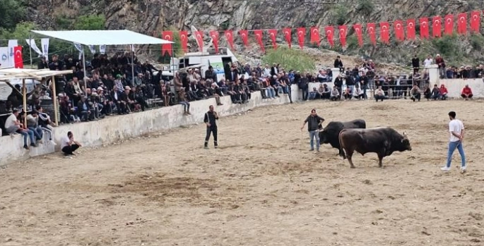 Boğalar sahada sahipleri ise saha önünde birbirine girdi. Kavgaya diğer boğa sahiplerinin de müdahil olmasıyla kavga daha da büyüdü.