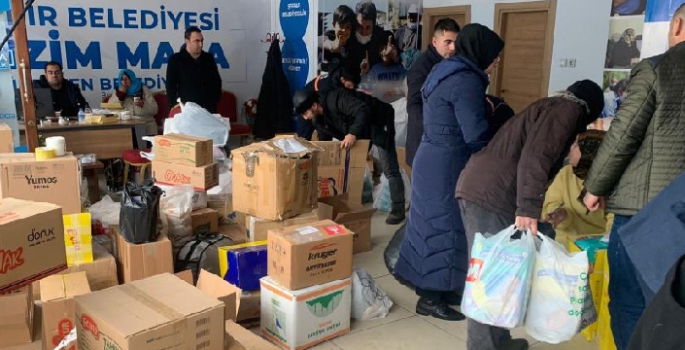 Deprem bölgesine ulaştırılmak üzere bot, ayakkabı, çorap, pantolon ve kazak ile gıda maddeleri; belediye ekiplerince toplanarak paketlendi.
