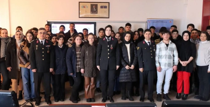 Erzurum İl Jandarma Komutanlığınca öğrencilerin bilgilendirilmesi ve kariyer planlamalarına katkı sağlamak maksadıyla Aşkale Kandilli Borsa İstanbul Lisesi’nde eğitim gören 50 öğrenciye Jandarma Genel Komutanlığının imkan ve kabiliyetlerine yönelik tanıtım faaliyeti icra edildi.