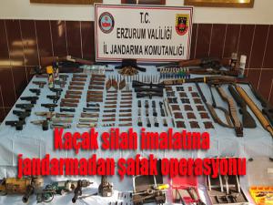 Edinilen bilgiye göre, Erzurum İl Jandarma Komutanlığı ekiplerince sabah 05.00 sıralarında bir şüpheli şahsın ev ve eklentilerinde arama yapıldı. Aramada evin zemin kısmında bulunan ve silah ve mühimmat imalathanesi olarak kullanılan sığınak içerisinde, 15 adet 9 mm çapında tabanca, 1 adet mavzer piyade tüfeği, 4 adet av tüfeği, 3 adet havalı tüfek, 3 adet silah üstü dürbün, 128 adet tabanca fişeği, 40 adet Mavzer Piyade tüfeği fişeği, 1 adet torna makinesi, 180 adet tabanca yedek parçası, 11 adet tabanca şarjörü, 130 adet tabanca boş kovanı, 13 adet av tüfeği kartuşu, 20 adet harbi ve 2 adet av fişeği kütüklüğü ile çok miktarda silah ve mühimmat imalında kullanılan mengene, metal cetvel, matkap, vidalama aleti, testere, zımpara kağıdı, boya, matkap ucu, yapıştırıcı, kelepçe, çekiç, tornavida ele geçirildi.