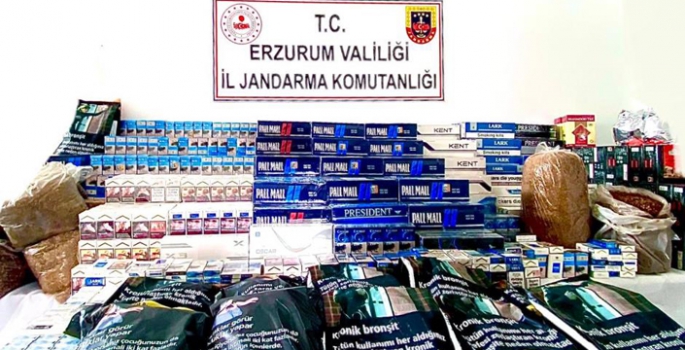Erzurum İl Jandarma Komutanlığı Karayazı İlçe Jandarma Komutanlığı ekiplerinin çalışmaları sonucunda 6 bin 728 paket kaçak sigara, 25 kilogram kıyılmış tütün, bin 30 adet içi doldurulmuş makaron, 38 paket kaçak çay, 250 adet sigara paketi, bin 600 adet makaron olmak üzere toplam piyasa değeri 215 bin TL olan kaçak malzeme ele geçirildi.