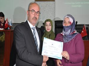 Tarım Projeleri Protokolü çerçevesinde kadın çiftçilere yönelik Süt Hijyeni-Sterilizer Makinesi Operatörü (Süthane-Mandıra) Eğitimi Protokolü kapsamında düzenlenen eğitimler sonucunda başarılı olan kadın çiftçilere başarı belgeleri düzenlenen törenle takdim edildi.