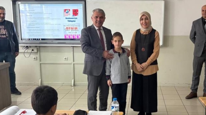 Bu duyarlı davranış üzerine Yakutiye İlçe Milli Eğitim Müdürü Abdurrahman Gazioğlu, okula giderek öğretmen Asuman Keskin ve öğrenci Ahmet Yasin Aslan’ı sınıfta ziyaret etti.