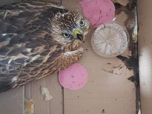 Aşkale D100 Karayolu üzerinde kamyonet şoförü aniden önüne çıkan Şahine çarptı. Yaralanan Şahin, vatandaşlar tarafından Aşkale Tarım ve Orman Müdürlüğü'ne getirildi. İlçe Tarım Müdürü Veteriner Hekimi Mustafa Evran tarafından yapılan muayeneler sonrası Şahininkanadının kırık olduğu tespit edildi.