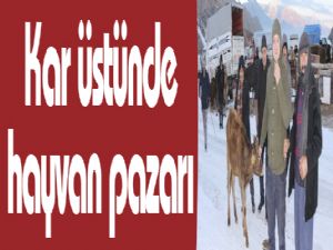 Erzurum'un Oltu İlçesinde eksi 10 derecede kar üzerinde kurulan canlı hayvan pazarında besiciler soğuk hava karşısında zor anlar yaşıyorlar.