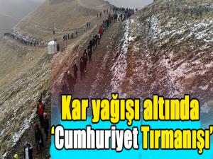 Palandökende bir otelin önüne saat 08.00de otobüslerle gelen Atatürk Üniversitesi Spor Kulübü öğrencilerine Erzurum Dağcılık İl Temsilciliği, Erzurum Kayak Kulübü, Atatürk Üniversitesi Spor Bilimleri Fakültesi ve Spor Lisesi öğrencileri eşlik etti. Yaklaşık 200 kişilik ekip, 3 bin 176 metre yüksekliğindeki Ejder Tepesine tırmandı. Kar yağışına aldırış etmeden, tek sıra halinde zirveye yürüyen grup, anlamlı bir tırmanışa imza attı. Tırmanışa katılan dağcılar, özçekim yaparak cumhuriyetin 96ncı yıl dönümünü ölümsüzleştirdi.