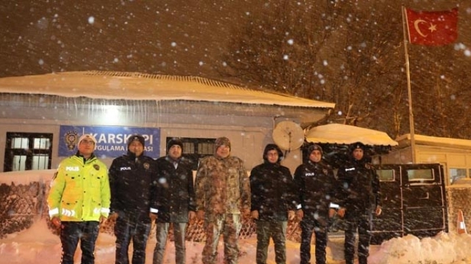 Görevli personelle bir araya gelen Karaburun, zorlu hava koşullarına rağmen büyük bir özveriyle çalışan emniyet mensuplarına teşekkür ederek, çalışmaların azim ve kararlılıkla sürdürüleceğini vurguladı.
