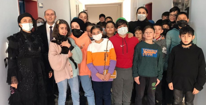 Karam ismini verdikleri kediyi sahiplenen öğrenciler ders aralarında karam ile yakından ilgileniyorlar.