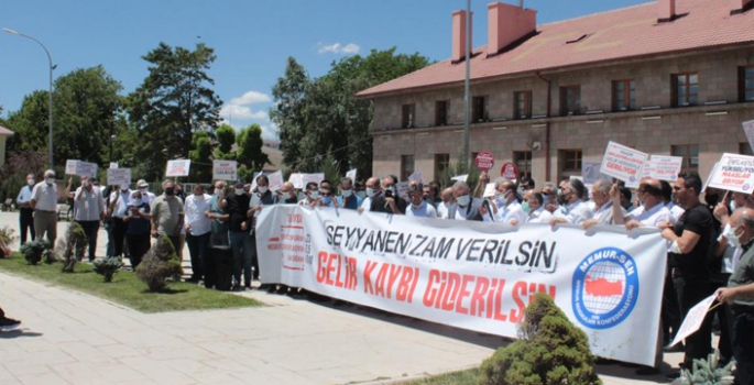 İstasyon Meydanı'nda toplanan Memur-Sen üyeleri, ücretlere yapılacak artışın dışında Türkiye’nin büyümesinde ve gelişmesinde en çok katkıya sahip olan kamu görevlilerine refahtan pay istediler. Eğitim Bir Sen 2 No'lu Şube Başkanı Mustafa Karataş yaptığı basın açıklamasında, “Malum bugün Haziran ayı enflasyon rakamı açıklandı. Böylelikle kamu görevlilerinin 2021 yılı ilk altı aylık zam oranına eklenecek enflasyon oranı da belirlenmiş oldu. 5. Dönem toplu sözleşmenin mutabakatsızlıkla sonuçlanması sonucu Kamu İşvereni ve Kamu Görevlileri Hakem Kurulu 2021 yılı için yüzde 3 + yüzde 3 zammı kamu görevlilerine reva görmüştü. Bugün açıklanan 1,94’lük Haziran ayı enflasyon oranıyla 2021 yılı ilk altı aylık enflasyon farkı 5,45 olmuş, böylelikle 1 Temmuz 2021 itibariyle yüzde 8,45’lik bir artış olmuştur. Bu zam değil, enflasyon kaynaklı memurun kaybıdır” dedi.