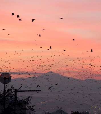 Havada dakikalarca beraber hareket eden kargalar adeta günbatımıyla beraber dans etti. Bazı karga sürülerinin ise çatılara ve ağaçlara kondukları görüldü.