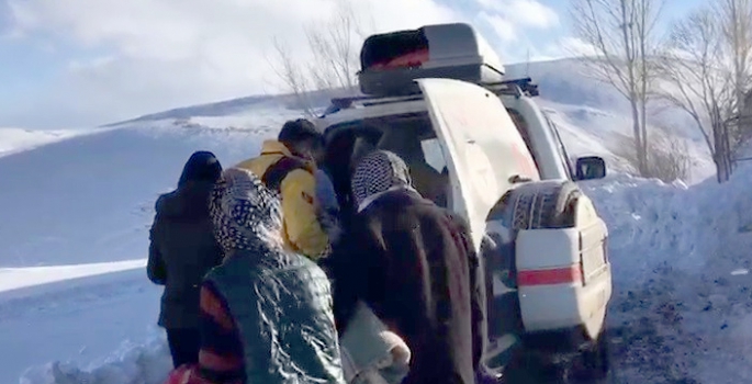 Aşırı fırtına nedeni ile ambulans helikopterin ulaşamadığı hasta için kırsal hizmetler karla mücadele ekipleri dozer ve loder ile aşırı fırtınaya rağmen yol çalışması yaparak 112 ambulansı ile mahalleye ulaştılar.