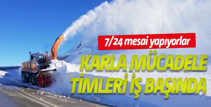 Kar kalınlığının 2 metreyi aştığı bölgede kar savurma araçlarıyla çalışma yapan kar temleri zor şartlarda 7-24 aralıksız görev yapıyorlar.