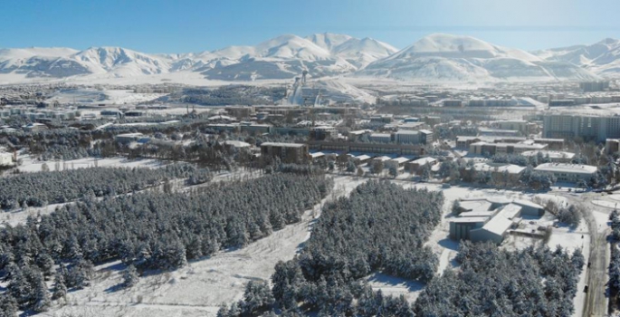 Erzurum’da kar yağışı sonrası oluşan manzara, dronla görüntülendi. Ağaçların üzerini kaplayan ve kenti beyaza bürüyen kar, kartpostallık görüntüler ortaya çıkarttı.