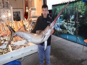 Çanakkaleli balıkçılar tarafından Marmara Denizi açıklarında yakalan 2 metre boyunda 35 kilo ağırlığındaki kılıç balığı tezgaha düşer düşmez kilosu 80 liradan meraklı bir müşteri tarafından satın alındı. Tezgahta özellikle dili dışarıda bir şekilde sergilenen ve görenleri hayrete düşüren kılıç balığı kısa bir sürede alıcısını buldu.