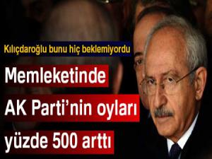 CHP Genel Başkanı Kemal Kılıçdaroğlunun memleketi Tuncelinin Nazımiye ilçesinde 1 Kasımda 40 oy alan AK Parti, 24 Haziran seçimlerinde bu rakamı 212ye çıkartarak yüzde 500den fazla artış sağladı.