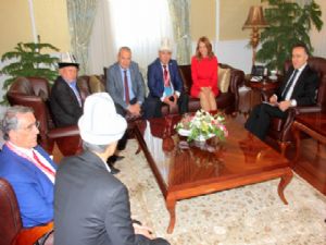 Güneş Vakfı'nın organize ettiği 4. Türk Şöleni programı için Erzurum'a gelen Kırgızistan Spor Bakanı Şeyşenkul Bakirov ve Azerbeycan Milletvekili Ganire Paşayeva, Erzurum Valisi Dr. Ahmet Altıparmak'ı Valilik makamında ziyaret ettiler.