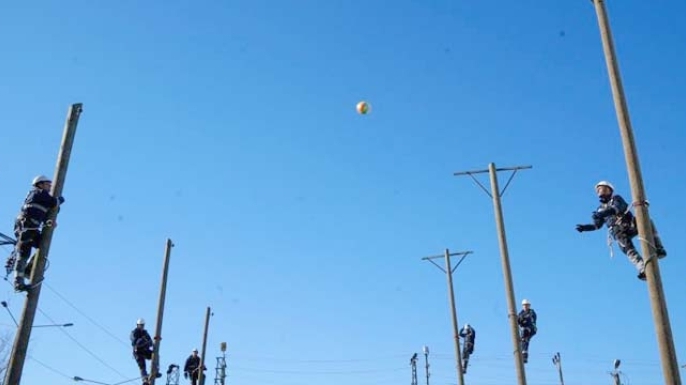 Doğu Anadolu Bölgesi'nde elektrik dağıtım hizmeti veren Aras EDAŞ, saha çalışanlarını zorlu iklim ve coğrafi şartlarına hazırlıyor. Personel sabah antrenmanlarında koşuyor, direk taşıyor ve elektrik direkleri üzerinde voleybol oynuyor.