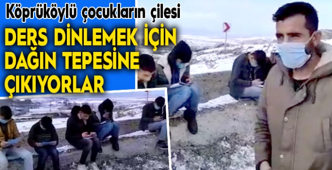 Ağcaşar Mahallesi'nde şebeke hatları sağlıklı çekmediği için öğrenciler, derslerini takip edebilmek için soğuk havada tepeye çıkıyorlar. Mahallede veliler de öğrencilere eşlik ederek onlara destek oluyorlar.
