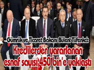 Tüfenkci, 2002'de sadece 5 bin TL olan bu kredinin üst limitini 200 bin TL'ye yükseltildiğini, Kasım ayı itibariyle esnaf ve sanatkara TESKOMB aracılığıyla ya da Halkbank'tan sağlanan destek miktarının 23 milyar TL'yi aştığını ve bu kredilerden yararlanan esnaf sayısının bugün 450 bin'e yaklaştığını belirtti.