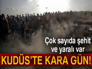 ABD`nin Büyükelçiliğini Kudüs`e taşımasına binlerce Gazzeliden tepki geldi. Gazzelilerin İsrail sınırında gerçekleştirdiği protesto eylemlerinde İsrail askerlerinin açtığı ateş sonucu 41 kişi hayatını kaybederken, en az bin 700 kişi de yaralandı. Yüzlerce Gazzelinin İsrail sınırını geçtiği bildirildi. İsrail askerleri göstericilere mermi ve gaz bombası ile karşılık veriyor. Gazzeli göstericiler, İsrail sınırı boyuncu Han Yunus, Refa ve El Bureyc mülteci kampı noktalarında İsraile karşı yürüyüşe devam ediyor.(iha)
