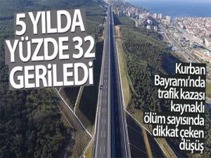 2016-2020 dönemindeki Kurban Bayramlarında meydana gelen kazalarda ölen kişi sayısı yüzde 32, yaralanan sayısı yüzde 43 düştü. 2016 yılı Kurban Bayramı'nda meydana gelen trafik kazalarında 74 kişi ölürken, 615 kişi yaralandı. 2017 yılında 122 kişi trafik kazası sonucu hayatını kaybetti. 2018 yılının Kurban Bayramı kaza bilançosu 56 ölü, 261 yaralı olurken geçtiğimiz sene 52 ölüm 427 yaralanma yaşandı. Bu bayram ise Arefe gününden bu yana meydana gelen trafik kazaları nedeniyle ölü sayısı 45, yaralı sayısı da 349 olarak gerçekleşti.