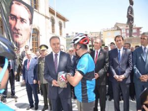 23 Temmuz Erzurum Kongresi'nin 96'ıncı yıl dönümü anısına düzenlenen "Kurtuluştan Dirilişe Milli İradeye Saygı Bisiklet Turu" tamamlandı. Bisiklet Gençlik Kulübü Sporcuları, Samsun'dan getirdikleri Türk Bayrağını ve Amasya Genelgesi'ni Erzurum Valisi Dr. Ahmet Altıparmak'a teslim etti.