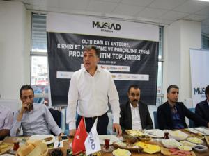 Müsiad Erzurum Şube Başkanı Fuat Demir, Amacımız önce taşradaki insanları ve ekonomiyi canlandırıp taşradaki istihdamı yerinde tutup metropol şehirlerin hem yükünü almak hem de batıya giden göçü önlemek için ciddi manada gayret içerisindeyiz. Bunlardan ilkini Oltuda gerçekleştireceğiz. Marka olan Oltu taşı gibi Oltu Cağ kebabını da marka etmek için Oltu Ticaret Odası da ciddi manada çalışmalar yaparak cağ dönerin patentini alarak tescillediler. Bizde Müsiad olarak bunun ilerisine geçip cağ dönerini dünya markası yapıp ciddi manada bir yatırım yapmak amacındayız. Tabi bu yatırımı yaparken de Müsiadın kendi vizyonu olan 2019 yılını ortaklık yılı ilan etmesi ile bu projemize tahakkuk etmesi de ayrıca bir değer katmıştır. Tabi bu yatırımı yaparken hiç bankalara bulaşmadan tamamen öz sermeye si ile bu yatırımları gerçekleştirmek bu yatırımları gerçekleştirirken buraya ne kadar ekonomiksel yani hem beyin ortağına ve sermaye ortağına açık olan bir yatırım için bugün burada bir araya geldik. Biz göreve geldikten sonra hem Erzurum ekonomisine hem de taşradaki ilçelerimizin ekonomilerine ciddi manada katkı sunmaktır. İlk projemizi Oltuda, Olurda Narmanda ve Şenkaya ilçelerimizde nasip olursa canlandıracağız. İkinci projemizin tanıtımını ise Tekmanda yapacağız dedi.