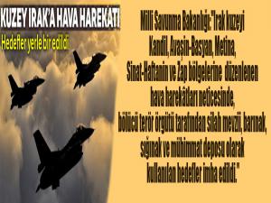 Milli Savunma Bakanlığı:"Irak kuzeyi Kandil, Avaşin-Basyan, Metina, Sinat-Haftanin ve Zap bölgelerine düzenlenen hava harekâtları neticesinde, bölücü terör örgütü tarafından silah mevzii, barınak, sığınak ve mühimmat deposu olarak kullanılan hedefler imha edildi."(iha)