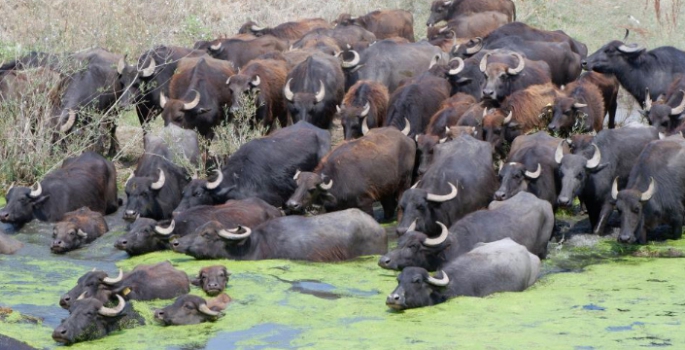 Yaklaşık 130 mandaya çobanlık yapan Çoban Ali Güner, işini severek yaptığını anlatarak, “Her sabah köydeki mandaları meydanda topluyorum ve çayırlarda otlatıyorum. Bunlar bütün köyün hayvanları. Elbette mandaların en büyük ihtiyacı su ve su banyosu. Bu olmazsa olmaz. Çok keyif alıyorlar. Su banyosunun zamanını mandalar ayarlıyor. İhtiyaçları olduğunu anlıyorum ve dere kenarına götürüyorum. Sudan ne zaman çıkacaklarına yine onlar karar veriyor. Serinlemek ve su içinde olmak onlara keyif veriyor. Ben de onları izleyerek dinleniyorum. Hayvanların suya girmesi süt verimini artırıyor. Suda temizleniyorlar” diye konuştu.