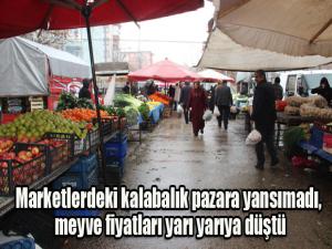 İşlerin yarı yarıya düşmesinden şikayetçi olan esnaf, Müşterilerimiz geçen haftaya göre yarıya kadar düştü. Meyve fiyatlarımız yarıya düşmesine rağmen vatandaşlar korkudan pazara değil marketlere gidiyorlar. Bizler eskiden eldiven takmadan çalışırdık, şimdi takıyoruz. Müşteriler ne kadar korkuyorsa biz de o kadar korkuyoruz dedi.