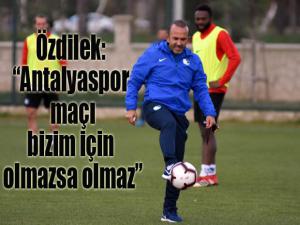 Büyükşehir Belediye Erzurumspor Teknik Direktörü Mehmet Özdilek, cumartesi günü oynanacak Antalyaspor maçını kazanmak için sahaya çıkacaklarını ifade ederek, Antalyaspor maçı bizim için olmazsa olmaz maçlardan bir tanesi dedi.