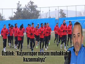 Spor Toto Süper Lig'in 17. haftasında evinde Kayserispor ile karşılaşacak olan B.B. Erzurumspor'da Teknik Direktör Mehmet Özdilek, kulüp tesislerinde düzenlenen basın toplantısında gazetecilerin sorularını yanıtladı. Süper Lig'in 17. haftasında 23 Aralık Pazar günü evinde oynayacakları Kayserispor maçını değerlendiren Özdilek, ilk devrenin son maçını kazanmak istediklerini ifade ederek, "İlk devrenin son maçını kendi evimizde oynayacağız. Rakip son iki haftadır kazanıyor. Kazandığımız taktirde puan olarak rakibin üzerinde olacağımız aşikar dolayısıyla olmazsa olmaz görünen bir müsabaka oynayacağız. İlk devreye sağlıklı girmek istiyoruz, kazanarak girmek istiyoruz, moralli girmek istiyoruz yani bu maç bizim için çok önemli bir karşılaşma. Son hafta deplasmanda kazanarak geldik ikinci yarı müthiş mücadele ettik. Oyuncularımızı tebrik ediyorum. Geçen haftaki geri dönüşün daha kıymetli olabilmesi içinde Kayserispor maçını muhakkak kazanmamız gerekiyor. Devre arasına 18 puanla girmek eminim bizi çok mutlu edecektir. Puansal anlamda çok büyük farklar yok enteresan bir lig yaşıyoruz. Yine söylüyorum rakipten çok bizim sahada ne yapacağımız önemli bunun için hazırlıklıyız" şeklinde konuştu.