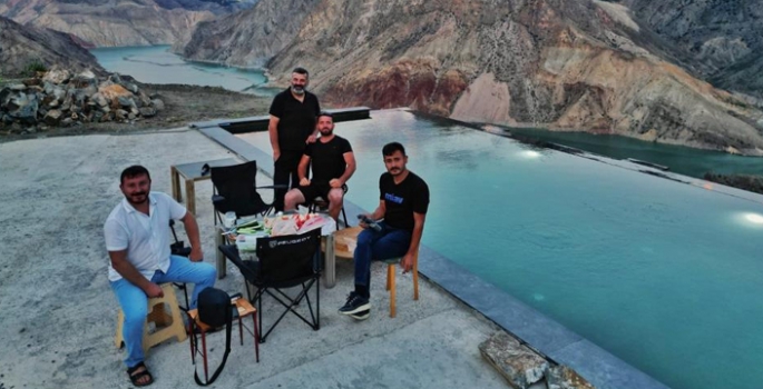Aydın Çiçek'in yaptığı bu sonsuz havuz, bölgeye gelen ziyaretçilerin hayranlıkla izlediği bir yapı haline geldi. Avrupa'nın çeşitli noktalarında görülen sonsuz havuzlar, şimdi Erzurum ve Artvin'in sınırında, doğanın kalbinde yer alıyor. Baraj gölü ile aynı renk tonlarına sahip olması için özel olarak üretilen fayanslar kullanılarak yapılan bu havuz, ışıklı ve ısıtmalı sistemi ile de dikkat çekiyor. Bu modern yapının yanı başında, Aşpişen Kalesi'nin tarihi dokusu ve uçsuz bucaksız kanyonlar, bölgeye gelenlere hem doğa hem de tarihle iç içe olma fırsatı sunuyor.