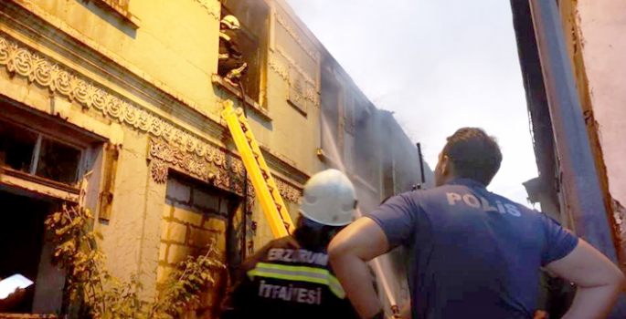 Yakutiye ilçesi Rabiana Mahallesi'nde Taşmağazalar arkasındaki sokakta bulunan iki katlı metruk binada yangın çıktı.