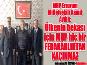 Beraberinde il başkanı Naim Karataş olduğu halde gazeteniz Palandöken'i ziyaret eden MHP Genel Başkan Yardımcısı ve Erzurum Milletvekili Prof. Dr. Kamil Aydın, ülkenin bekası söz konusu olduğu vakit MHP tıpkı bugüne kadar olduğu gibi bugünden sonra da hiç bir fedakârlıktan kaçınmayacağını söyledi. Kamil Aydın, MHP'den kopan partilileri için de "vagondan düşenlerle işimiz olmaz. Biz büyük ülkülerin partisiyiz" dedi.