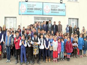 Törene Horasan İlçe Milli Eğitim Müdürü Selahattin Karakurt, Okul Müdürü Berkant Sülün, yerel siyasetçiler, öğrenciler, öğretmenler ve veliler katıldı. Törende öğrenciler hazırladıkları şiirleri okudu. Tören bittikten sonra Vehbi Orakçı'ya teşekkür plaketi verildi. Ardından okuldaki öğrencilere okul çantası dağıtıldı.